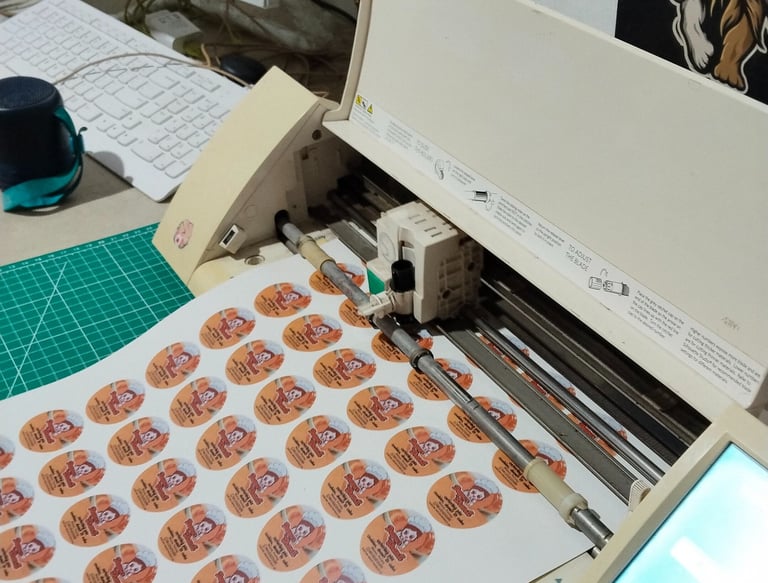 Didukung teknologi High-Res Pigment Print & Cut untuk stiker label yang presisi dan tahan air, serta layanan sablon kaos dengan opsi lengkap: Express Digital untuk kebutuhan mendesak dan DTF Premium untuk hasil setara standar distro. Satu tempat untuk segala kebutuhan branding Anda.